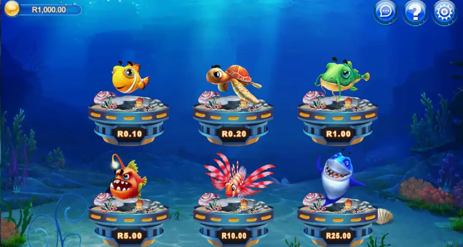 The game begins with you selecting your bets or the amount of money it’s going to take to shoot your cannons. This amount ranges from 10 cents to 25 bucks and is represented by different fish. Once the money has been placed, you start on the ocean floor with four separate grids to switch between while hunting fish to catch. Each grid gives you a different environment with fun graphics.